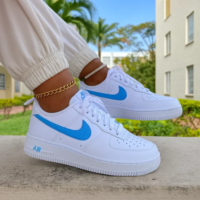 ✅ Fresh white with dynamic sky blue – a real eye-catcher