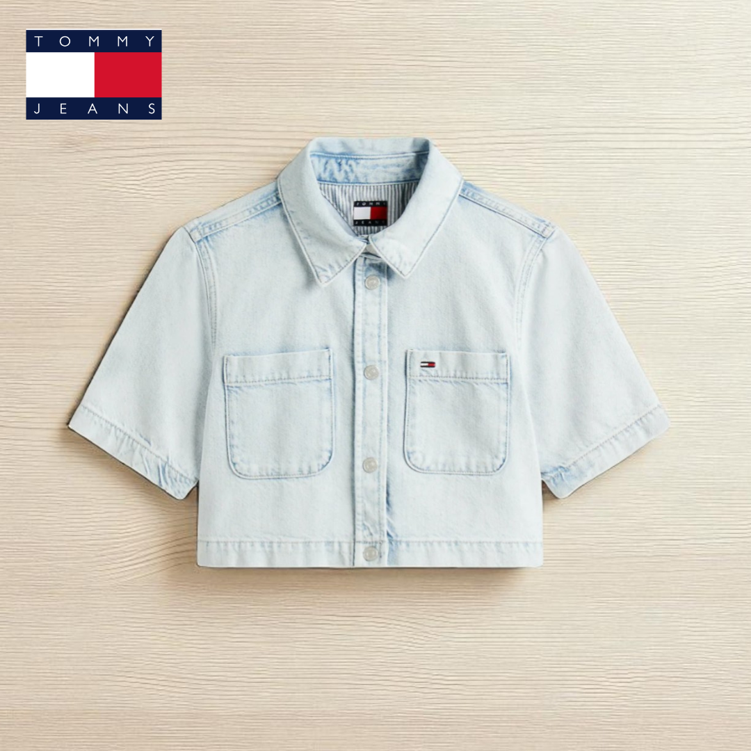 Verleihe deinem Freizeitlook ein Upgrade mit diesem hellblauen, kurz geschnittenen Denim-Hemd von Tommy Jeans. Mit kurzen Ärmeln, Knopfleiste und zwei Brusttaschen kombiniert es lässigen Stil mit Funktionalität. Abgerundet wird das Design durch das ikonische Tommy Jeans Flaggenlogo – ein echtes Must-have für jeden Denim-Fan.Das könnte Ihnen auch gefallen